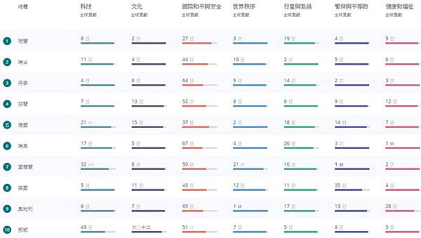 依據英國學者安霍特(Simon Anholt)所發起「好國家指數」(good country index)統計,今年最新的「好國家排行榜」已出爐,一向自居世界領導地位的美國未進入全球前10,僅排名25,而在評比項目之一的「國際和平及安全」上,美國是全部163個國家中的第72名。台灣因數據不足,未列入排名。
