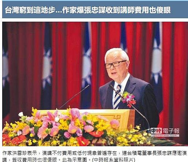台灣窮到這地步…作家爆張忠謀收到講師費用也傻眼 - 中時電子報 - https://goo.gl/T5jq1E