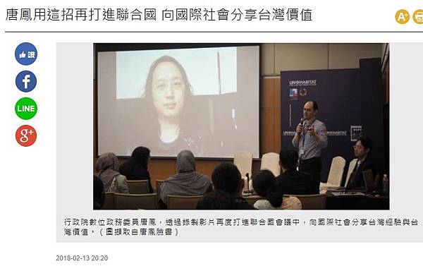 分享唐鳳奇襲聯合國會議暢談ICT 中方崩潰跳針反台獨到Facebook 分享唐鳳奇襲聯合國會議暢談ICT 中方崩潰跳針反台獨到Line 分享唐鳳奇襲聯合國會議暢談ICT 中方崩潰跳針反台獨到Google+