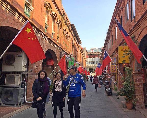 〔記者吳正庭/金門報導〕金門老街出現新景點,知名的「模範街」同時出現中華民國國旗與中國五星旗對掛,既是「一邊一國」又像「兩岸一家親」,今天成了遊客打卡、自拍的「特色一條街」。