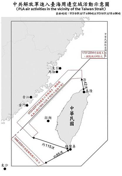 〔記者黃靖媗/台北報導〕國防部今(23日)表示,自昨日上午6時至今日上午6時止,國軍偵獲共機5架次,其中3架次逾越台灣海峽中線,進入我西南、東南空域。