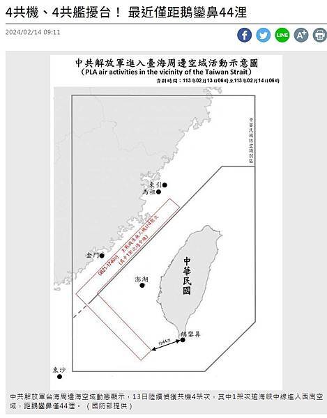 國防部強調,國軍運用任務機、艦及岸置飛彈系統嚴密監控與應處。