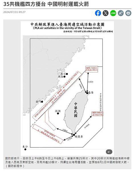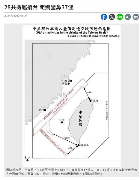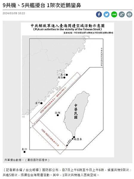 8架次共機擾台 7艘次共艦在台海周邊活動 - 自由軍武頻道 https://bit.ly/4nnvsXM