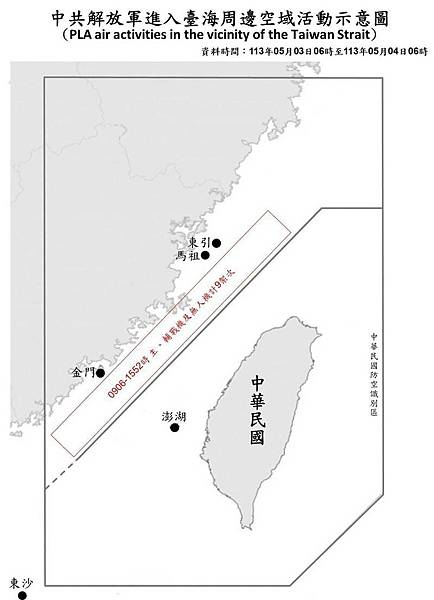 國防部今日發布台海周邊海空域動態指出,一共偵獲5架次中共軍機、9艘次中共軍艦,持續在台海周邊活動。