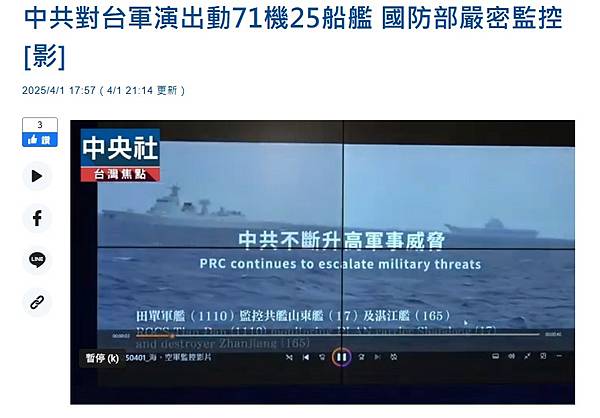 中共對台軍演出動71機25船艦 國防部嚴密監控[影] | 政治 | 中央社 CNA
