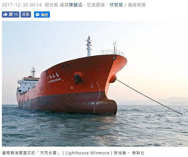 南韓外交部廿九日表示,南韓海關上個月扣留並搜查了香港籍貨船「方向永嘉」號(Lighthouse Winmore),該貨船疑似違反聯合國安理會制裁北韓的決議案,於十月間在東海國際海域以「船對船交貨」方式秘密移交六百噸精煉石油給北韓。