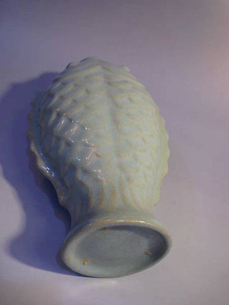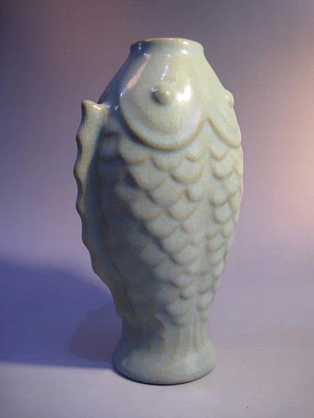 汝窯天青釉色雙魚瓶,高20厘米、底徑6.5厘米