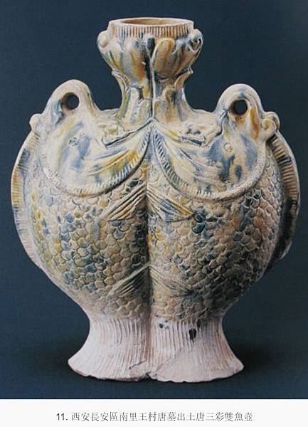 11. 西安長安區南里王村唐墓出土唐三彩雙魚壺11. 西安長安區南里王村唐墓出土唐三彩雙魚壺