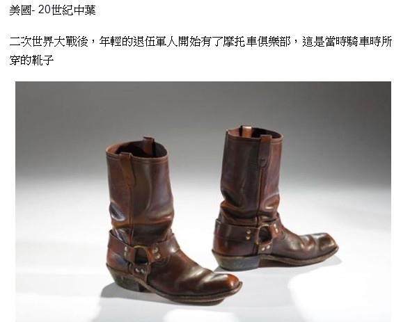 二次世界大戰後,年輕的退伍軍人開始有了摩托車俱樂部,這是當時騎車時所穿的靴子