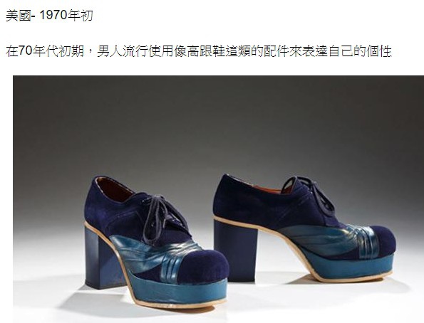 在70年代初期,男人流行使用像高跟鞋這類的配件來表達自己的個性