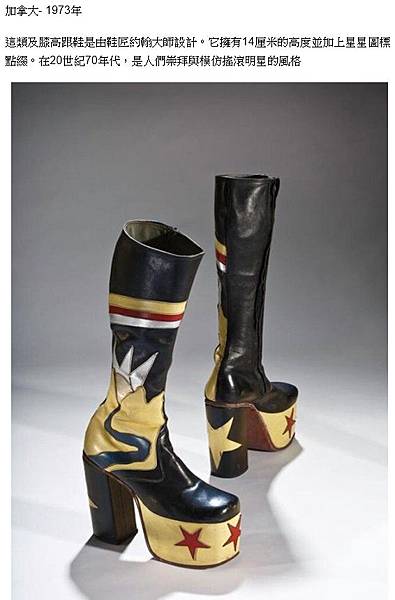 這類及膝高跟鞋是由鞋匠約翰大師設計。它擁有14厘米的高度並加上星星圖標點綴。在20世紀70年代,是人們崇拜與模仿搖滾明星的風格