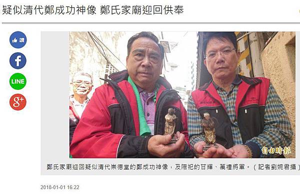 分享疑似清代鄭成功神像 鄭氏家廟迎回供奉到Facebook 分享疑似清代鄭成功神像 鄭氏家廟迎回供奉到Line 分享疑似清代鄭成功神像 鄭氏家廟迎回供奉到Google+