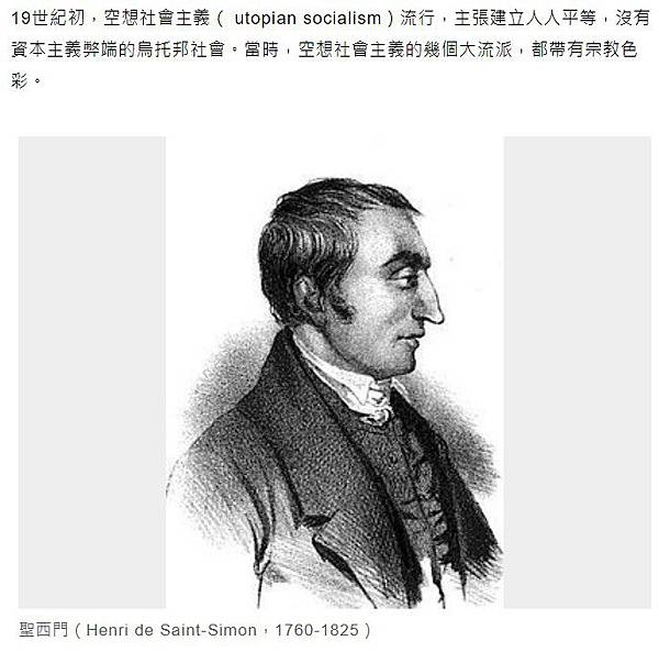 19世紀初,空想社會主義( utopian socialism)流行,主張建立人人平等,沒有資本主義弊端的烏托邦社會。當時,空想社會主義的幾個大流派,都帶有宗教色彩。