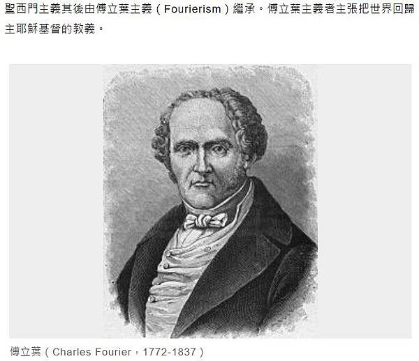 聖西門主義其後由傅立葉主義(Fourierism)繼承。傅立葉主義者主張把世界回歸主耶穌基督的教義。
