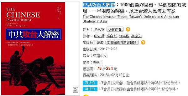 易思安在《中國攻台大解密》一書中說:中國嘴裡說和平統一,只是騙人的幌子,即便在馬英九時代,馬先生把大總統做成小買辦,台灣政府所出爐政策,最迎合中國,也最有利經濟統合,邁向統一的8年,老共還是不斷研擬攻台戰略,整備軍武,從沒停止收買藍營政客,充當戰爭發生時,裡應外合的棋子,不管是挑起事端,設計成「打人者喊救人」,或採用局部戰爭威迫,或進行全面導彈攻擊,只要達到逼迫台灣投降目的,對於戰爭會造成多少人死亡,根本不是老共考慮的問題。
