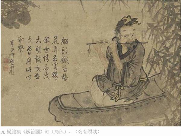 元·楊維禎《鐵笛圖》軸(局部)。(公有領域)