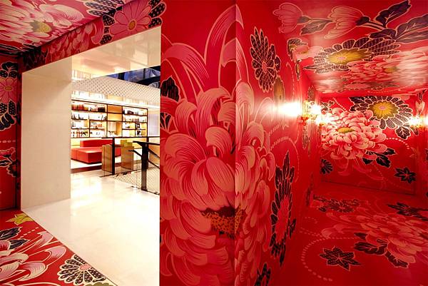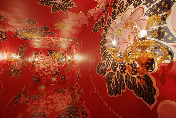 接著幸運的牡丹花與林明弘,被時尚大帝老佛爺Karl Lagerfeld相中了,進入建築女皇Zaha Hadid打造的香奈兒移動藝術館中Mobile Art Pavilion for CHANEL,以更洗鍊的當代裝置藝術空間語彙,跟著香奈兒環球旅行,向世人展現更新的花布藝術時尚。只可惜不景氣襲擊了全球時尚精品業,原本要從2008年起要一直環遊世界的移動藝術館,提早結束旅行回到巴黎落腳。