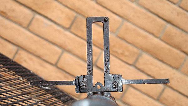 九九式翻開的防空用後準星。側邊的夾子用來判定目標飛機的飛行速度。