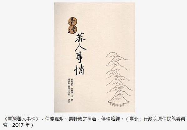 《臺灣蕃人事情》,伊能嘉矩、粟野傳之丞著,傅琪貽譯。(臺北:行政院原住民族委員會,2017 年)
