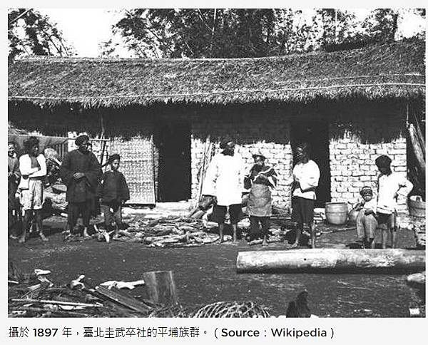 攝於 1897 年,臺北圭武卒社的平埔族群。(Source:Wikipedia)