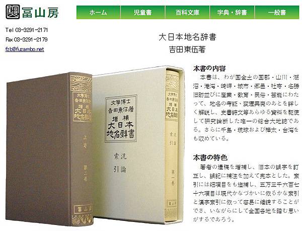 《大日本地名辭書》,富山房,1971 年。(Source:natsume-books.com)