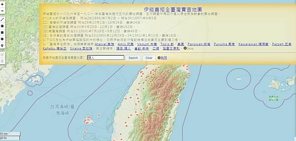 伊能嘉矩於一八九七年五月至十一月應總督府學務部的指派,與粟野傳之丞進行了「蕃人教育設施準備ニ關スル調查」,日程總計一百九十二日,幾乎環繞臺灣島一周。