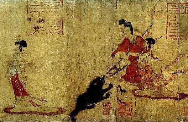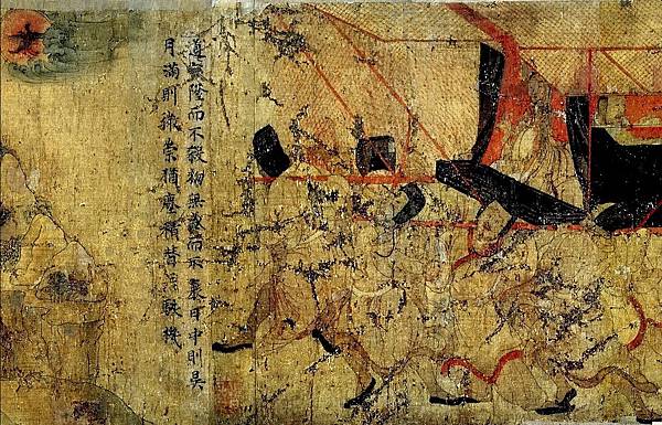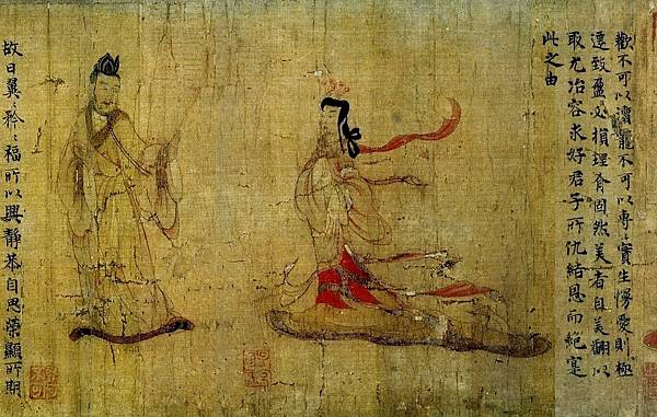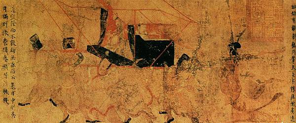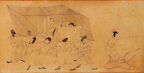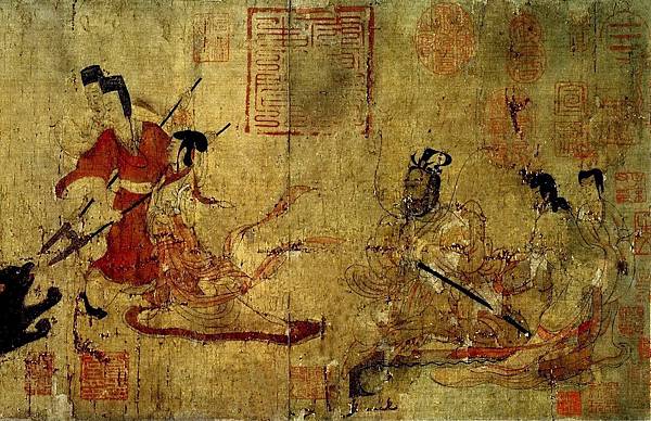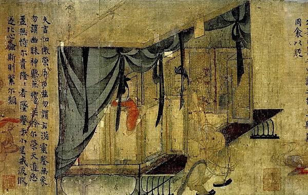 南北朝畫家顧愷之(346-407)的作品〈洛神賦圖〉,顧愷之另一件傳世的作品是現存於大英博物館的〈女史箴圖〉。