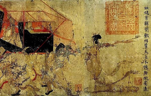 晉朝顧愷之在他所畫的《女史箴圖》中,描繪了班婕妤與漢成帝同乘駕輿的情景,把班婕妤的端莊嫻靜,作為勸導嬪妃們慎言善行、普天下女子以此為鑒的典範,成了美好婦德的化身。