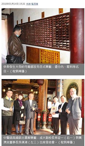 興濟宮董事長吳漢清表示,因為成大長期協助、廟方宗教學術研究成果有目共睹,持續舉辦國際研討會、學者發表論文集結成冊,連續4年獲國史館「非使用政府預算學術性書刊」評比第一名榮譽。