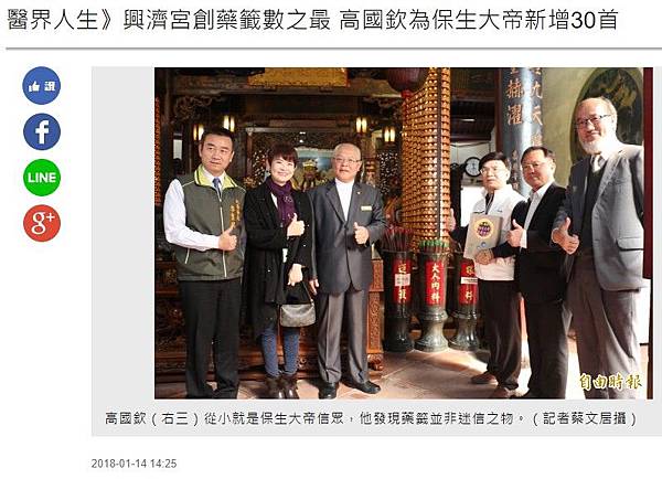 分享醫界人生》興濟宮創藥籤數之最 高國欽為保生大帝新增30首到Facebook 分享醫界人生》興濟宮創藥籤數之最 高國欽為保生大帝新增30首到Line 分享醫界人生》興濟宮創藥籤數之最 高國欽為保生大帝新增30首到Google+