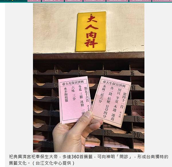 祀典興濟宮祀奉保生大帝,多達360首藥籤,可向神明「問診」,形成台南獨特的藥籤文化。(台江文化中心提供)