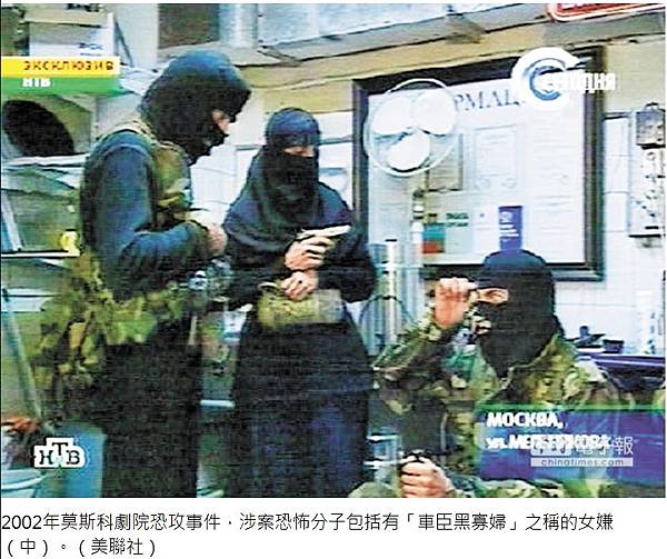 女自殺炸彈客的戰果更勝男性,這群穿著黑長袍、臉蒙黑面紗,如尋常穆斯林的婦女,腰間可能綁著足以炸毀一架飛機的炸藥,發動令政府措手不及的突襲行動。她們目標也從俄國和車臣軍警和政府機關,擴及無辜平民。