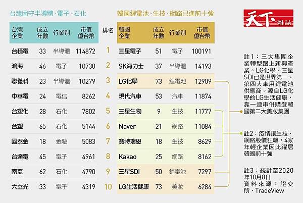 0 vs.7家新產業|台灣市值前十大都老面孔,韓國為何換血成功|天下雜誌