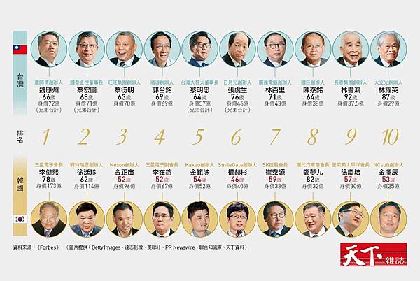 72歲vs.59歲|台韓十大富豪平均年紀差一輪,是誰年輕又有錢?|天下雜誌