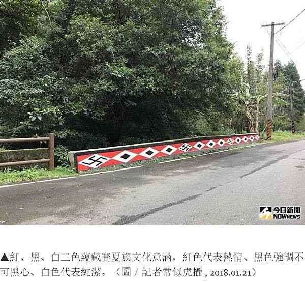 ▲南庄鄉橫屏背生態賞魚步道入口的圖案,經常被遊客誤會成納粹標誌。(圖/記者常似虎攝 , 2018.01.21)