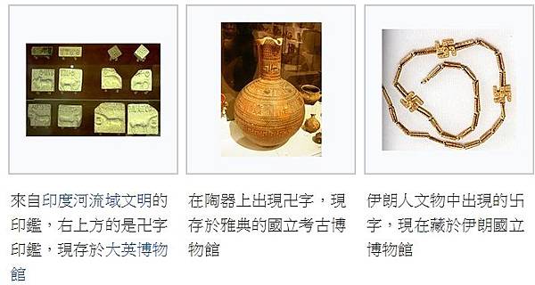 卐字在歐亞大陸有很悠久的歷史,早見於印歐文化之中,譬如印度阿利安文化、波斯文化、西臺文化、斯拉夫文化、凱爾特文化、希臘文化、中國馬家窯文化等等。根據考古記錄,卐字最早已經在新石器時代出現。考古學家在伊朗胡齊斯坦省出土的陶器碎片中發現了這些圖案。在青銅時代初期,在俄羅斯烏拉爾山南部的辛達雪塔出土的陶器之上也有卐字圖案。早期印度的卐字卻在古吉拉特邦的羅索爾(Lothal)和巴基斯坦哈拉帕等地出土的印鑑中。[3]