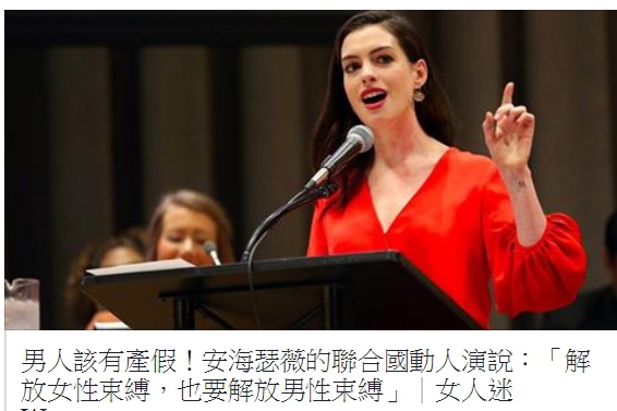 解放女性束縛,也要解放男性束縛」男人該有產假!安海瑟薇的聯合國動人演說