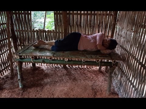 78歲的王川雄從上周帶領台科大建築系學生,從挖基樁洞開始,逐步的架出竹屋的雛型,不同用途使用不同的竹種,支柱以堅固耐用的刺竹,底部塗上柏油防蟲、防腐蝕,橫柱使用桂竹及長枝竹,並以黃藤固定綁實,不用鐵釘等現代材料,屋頂覆蓋30公分厚的芒草,傳統竹屋可以使用約80年。