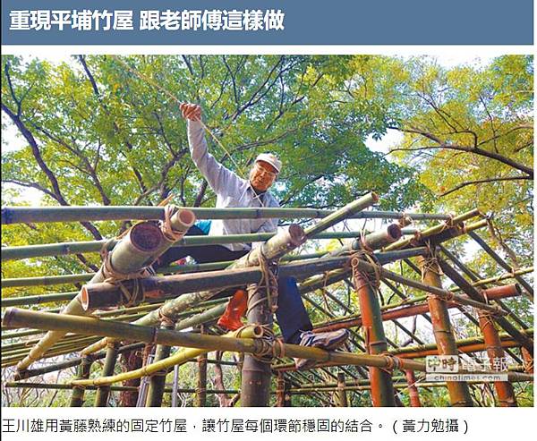 王川雄表示,年輕時與父親、阿公做過傳統竹屋,之後曾中斷40多年未再蓋過,不過程序都記在腦海中,3年前有蓋過平埔族公廨,這次蓋傳統竹屋游刃有餘。