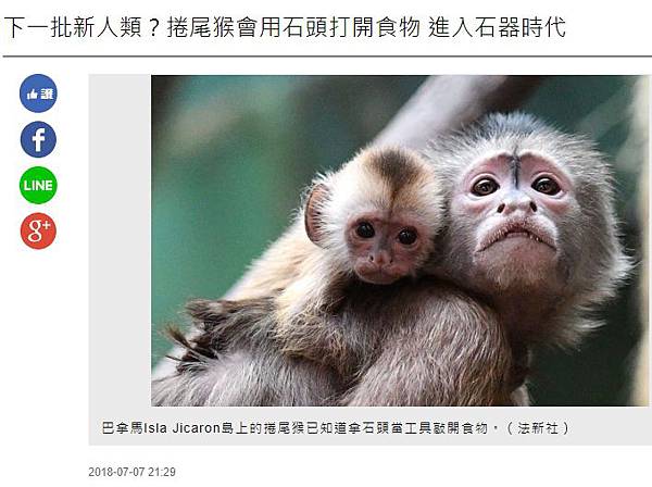 白面捲尾猴用與自己體重一半重的石頭當工具,去敲開甲殼類、堅果和其他食物,而且牠們相當聰明,還會尋找平坦的岩石或木頭「當砧板」,團員巴特雷(Brendan Barrett)表示,他們當時見狀真的「驚呆」。