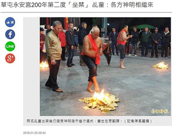 分享草屯永安宮200年第二度「坐禁」 乩童:各方神明相繼來到Facebook 分享草屯永安宮200年第二度「坐禁」 乩童:各方神明相繼來到Line 分享草屯永安宮200年第二度「坐禁」 乩童:各方神明相繼來到Google+