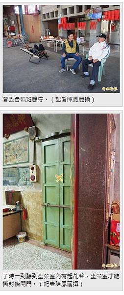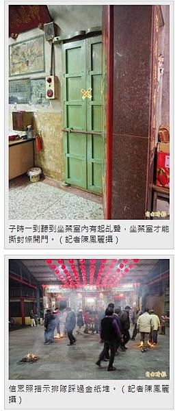子時一到聽到坐禁室內有起乩聲,坐禁室才能撕封條開門。(記者陳鳳麗攝)