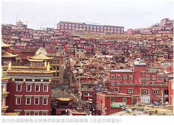 四川色達縣喇榮五明佛學院被當局拆除現場(自由亞洲電台)