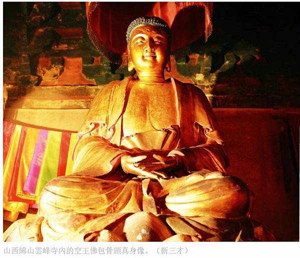 山西綿山雲峰寺內的空王佛包骨頭真身像。(新三才)