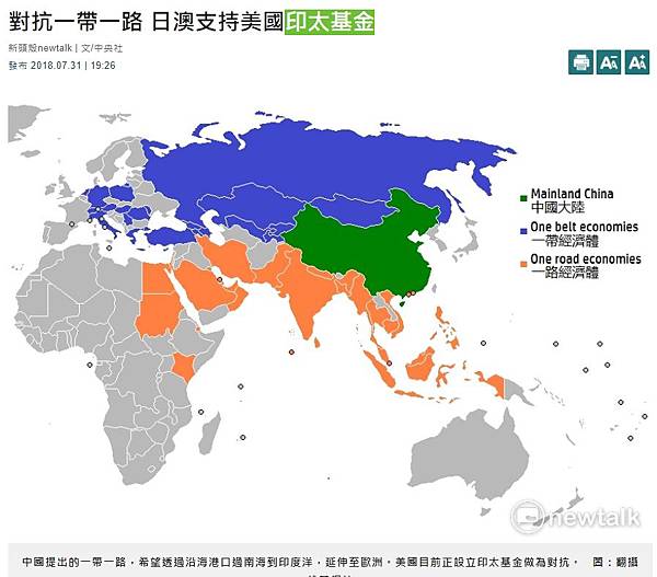 對此,日本政府認為,這是推動首相安倍晉三、美國總統川普所提倡的「自由開放的印太戰略」之一環,可因應這地區對基礎設施日增的需求,促進民間企業的成長。