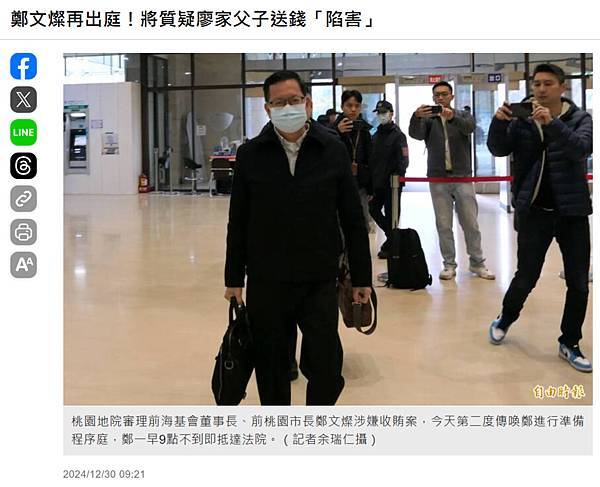 鄭文燦再出庭!將質疑廖家父子送錢「陷害」 - 政治 - 自由時報電子報 https://bit.ly/4gBqva8