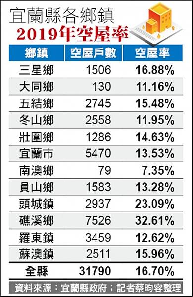 你知道全台灣空屋率的縣市在哪嗎?答案是宜蘭縣,空屋率來到了15.61%,而在宜蘭縣當中,又以礁溪鄉的空屋率最高,比例來到了32%,專家表示因為礁溪這邊房子,很多都是假日才來居住,而政府計算空屋,是以住宅用電量來算,所以礁溪才會高。另外雖然空屋率高,但若扣除掉偏鄉跟老舊房子,其實房屋供應仍舊不是很足夠。