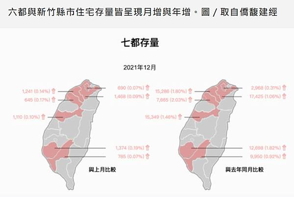 六都與新竹縣市住宅存量皆呈現月增與年增。圖/取自僑馥建經