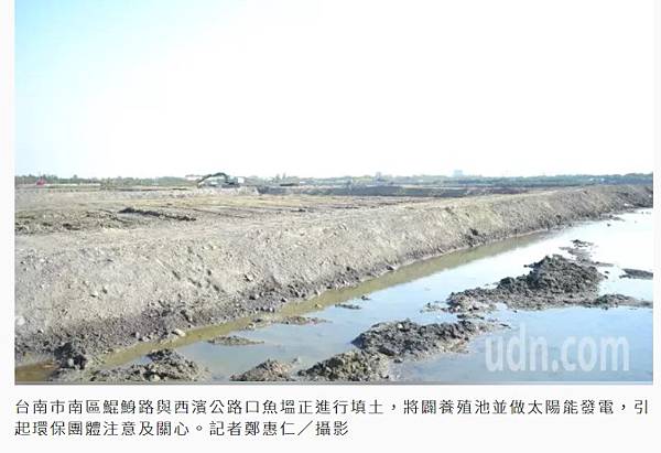 台南市南區鯤鯓路與西濱公路口魚塭正進行填土,將闢養殖池並做太陽能發電,引起環保團體注意及關心。記者鄭惠仁/攝影
