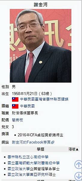 現任財訊集團社長兼執行長:謝金河---謝金河出生於雲林